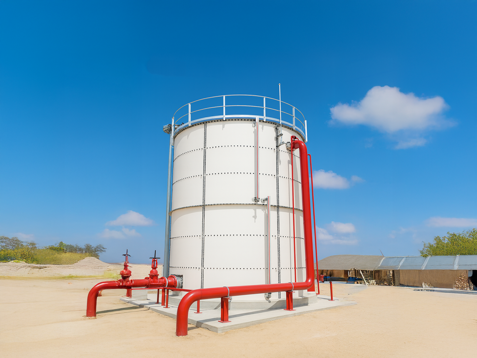 تجهيز وتنفيذ خزان بسعة (20,000 متر مكعب) في قسم المستودعات، مع توريد وتركيب مضخة رئيسية ومنظومة أنابيب متكاملة لربط الخزان بشبكة التوزيع أو التغذية الخاصة بالمنشأة.