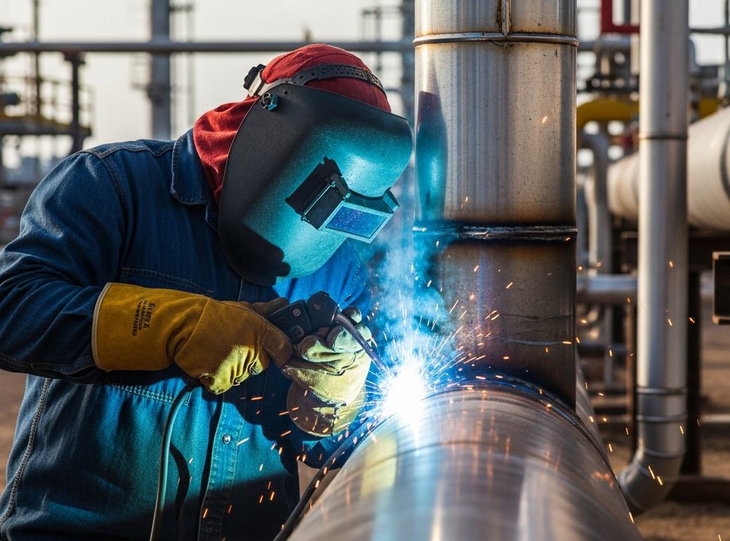 أعمال لحام خطوط الأنابيب لوحدات المسار الحرج في مصفى الدهون تشمل تنفيذ لحام صناعي دقيق لضمان سلامة وكفاءة التشغيل في الوحدات الحيوية ذات الأهمية العالية.